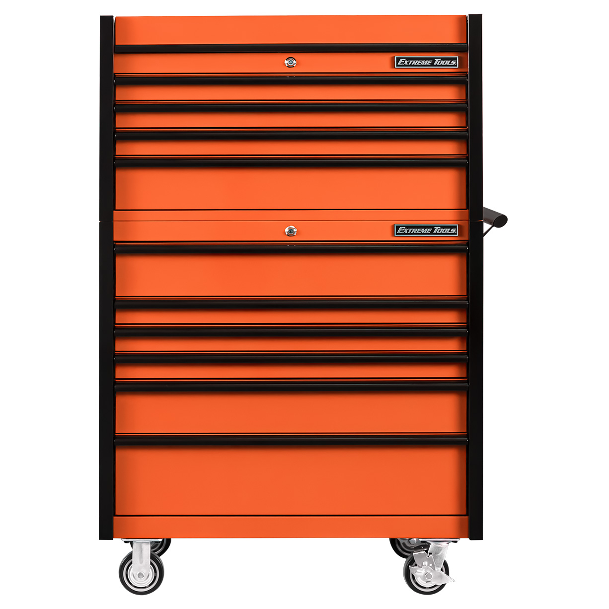 - DX4110CROK Orange with Black Drawer Pulls (consists of DX4104CHOK top chest and DX4106RCOK roller cabinet)
