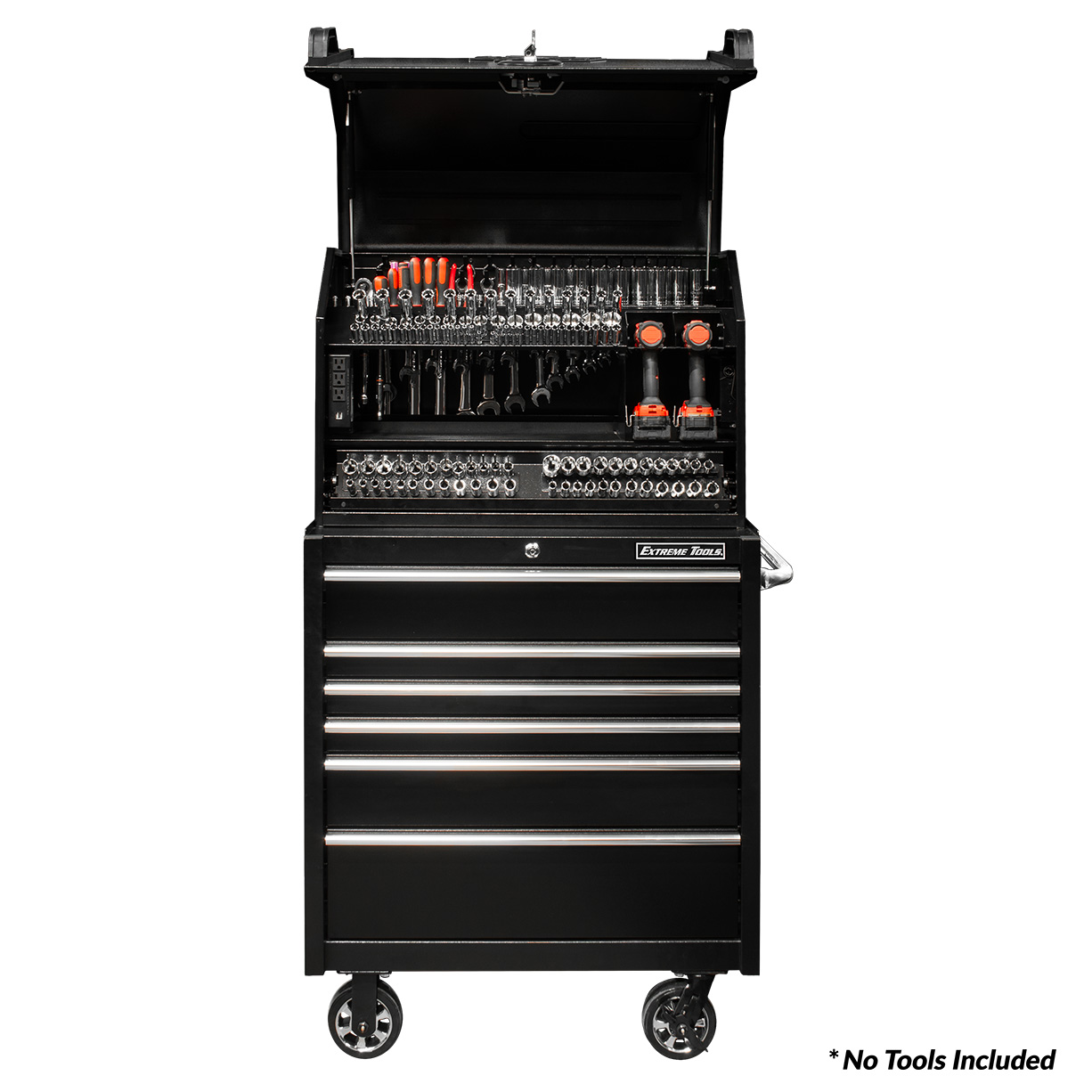 The Extreme Tools® PWSRC3620 Combo gives you two professional-grade solutions in one: a 36″ Extreme Portable Workstation® on top and a 6-drawer roller cabinet below. Together, they deliver serious storage, power access and durability — whether you’re working in the shop, in the truck or on the jobsite.